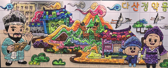 테마역사는 △정약용 소개 구간 △정약용 브랜드맵 구간 △시민참여 갤러리로 구성됐다. 소개 구간은 다산동 명칭의 유래가 된 ‘다산’ 글자와 영정 이미지를 입체적으로 표현했고, 브랜드맵 구간은 정약용의 저술과 발명품을 서가 형태로 배치해 브랜드 키워드를 시각화했다.