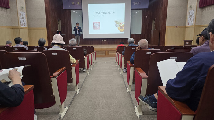 수강생들은 인장의 기원과 동서양의 발전 과정을 살펴보고, 조선시대 어보.국새 등 인장의 종류와 기능, 장서인의 유형과 예술적 가치 등을 배우며 높은 관심을 보였다.