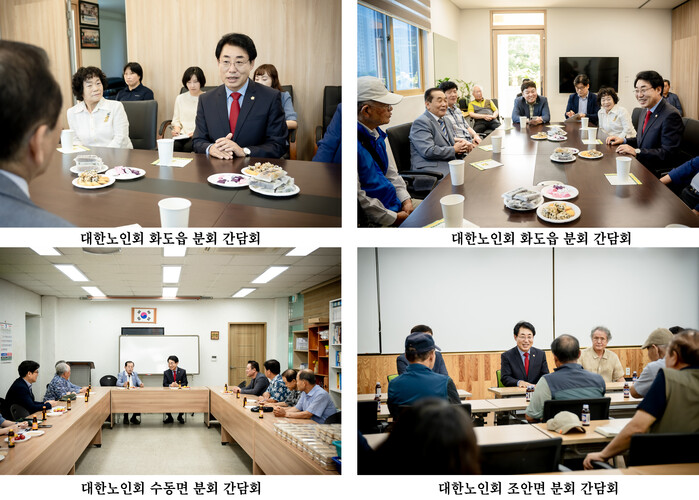 이날 화도읍과 수동면, 조안면의 대한노인회 분회를 방문한 조성대 의장은 각 지역의 분회장들을 만나 간담회를 통해 어르신들의 권익신장을 위한 방안에 대해 논의하고 경로당 운영, 노인 일자리 사업 등 노인회 운영과 관련된 현안과 건의 사항을 경청하는 시간을 가졌다.
