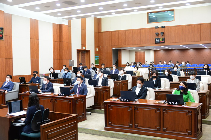 이날 본회의에서는 각 상임위원회의 예비심사와 예산결산특별위원회의 최종심사를 거쳐 ▲2021회계연도 결산 및 예비비 지출 승인의 건, ▲2022년도 제2회 추가경정예산안, ▲2022년도 서울특별시 동작구 통합재정안정화 기금 운용 변경 계획안, ▲2022년도 도로굴착복구기금 운용계획 변경안을 가결했다.