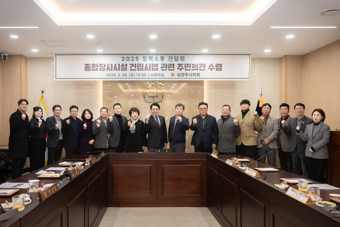 간담회는 의회에서 조성대 의장을 비롯, 이정애 부의장, 이진환 운영위원장, 한근수 자치행정위원장, 이경숙 복지환경위원장, 박경원 도시교통위원장, 김동훈 의원, 김지훈(민) 의원, 이수련 의원, 김상수 의원이 참석하였으며, 주민대표로 조양래 남양주시 이·통장연합회장, 장태식 남양주시 주민자치협의회장과 임원진, 복지국장 등이 참석한 가운데, 종합장사시설 건립과 관련한 집행부의 추진방향 설명과 주민대표 의견 청취 및 토의 순으로 진행됐다.