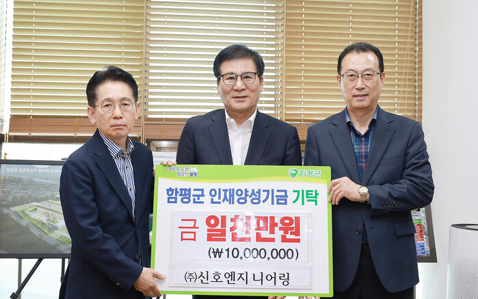 함평군은 13일 “㈜신호엔지니어링이 지난 10일 지역인재 발굴과 교육 지원을 위해 인재양성기금 1천만 원을 기탁했다”고 밝혔다.