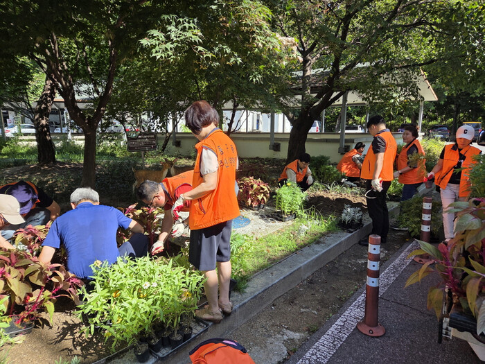 특히 이번 행사에서는 여름의 끝자락, 성큼 다가온 가을 정취를 느낄 수 있도록 한진쌈지공원을 포함한 관내 주요 화단 10개소 및 화분 40여 개에 국화, 메리골드, 맨드라미 등 13종 약 3,000본의 가을꽃을 식재해 쌈지공원을 새롭게 단장했다.