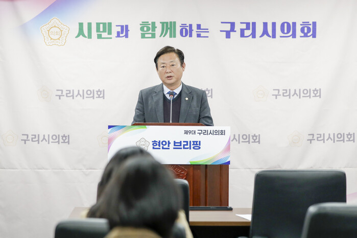 [구리=최광대 기자] 구리시의회는 6일 구리시의회 멀티룸에서 브리핑을 실시하고, 최근 이슈가 되고 있는 긴급현안질문과 관련한 차기 임시회 운영과 행정사무조사특별위원회 운영 계획을 설명했다.