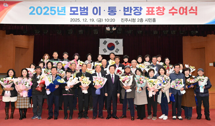 진주시는 19일 시청 시민홀에서 이·통·반장 및 축하객 등 150여 명이 참석한 가운데‘2025년 모범 이·통·반장 표창 수여식’을 개최했다.