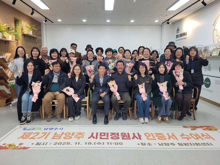 공원녹지관리사업소장은 “이번에 인증과 수료를 마친 시민정원사들이 남양주의 정원문화를 이끌 중요한 주체로 성장해 기쁘다”며 “시는 앞으로도 시민이 참여할 수 있는 정원문화의 기반을 넓혀가겠다. 시민정원사 여러분의 적극적인 참여를 기대한다”고 말했다.