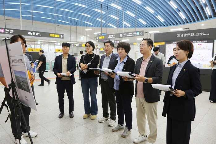도시교통위원회(위원장 박경원)는 진건읍 도시·주거환경정비 기본계획 구역, 별내면 인도 정비사업, 능내마을다리 공사 현장, 진접4호선 차량기지, 왕숙 공공주택지구, 화도 하수처리시설, 다산역 출구 공사구간 등 10곳을 점검했다. 위원들은 보행환경 개선, 집중호우에도 견딜 수 있는 차량기지 시공, 침체 상권 활성화, 보도 침하부 신속 복구 등을 제안했다.