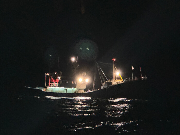[목포=황승순 기자]목포해양경찰서(서장 권오성)가 지난 23일 오후 7시 10분께 신안군 가거도 남서방 81km 인근 해상에서 허가증을 미비치 한 채 어업활동을 한 혐의로 중국어선 A호(198t, 쌍타망, 9명)를 나포했다.