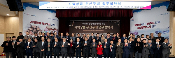 인천시의회 산업경제위원회는 12월 10일 인천시청 대회의실에서 인천지역 내 공공기관과 경제단체 등 주요 기관 45곳과 함께 지역 상품 우선구매 업무협약식을 개최했다.