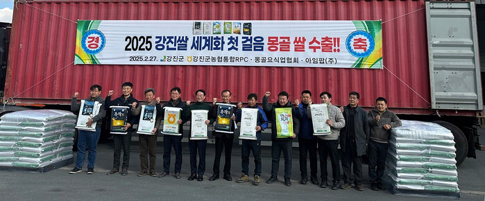 28일 강진군에 따르면 군은 몽골과의 500톤 규모 수출 계약에 따라 지난해 12월 27일 1차로 20톤을 수출한 데 이어, 이달 27일 2차 선적으로 40톤의 강진쌀을 몽골로 추가 수출했다.