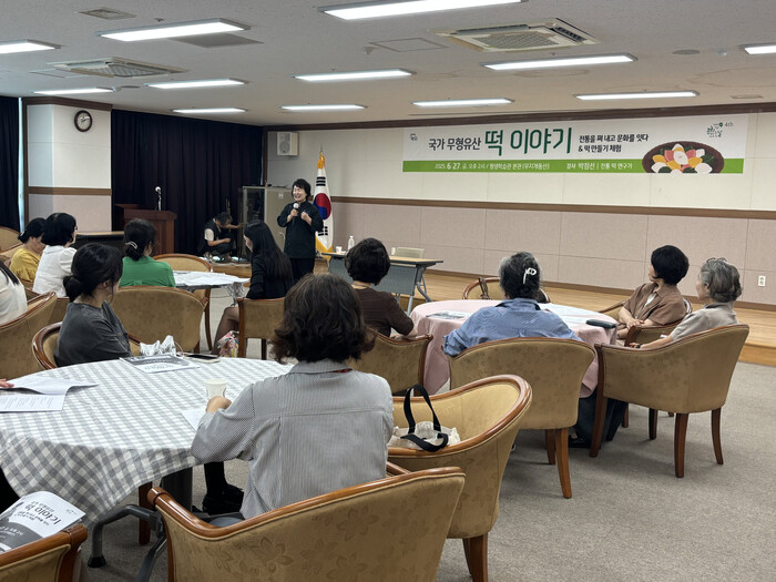박점선 강사는 대한민국 조리기능장이자 진주시 평생학습관 떡제조기능사 강사로 활동하고 있으며, 이날 강연을 통해 떡이 단순한 음식이 아닌 우리 민족의 정서와 문화가 응축된 무형유산임을 강조했다. 특히 세시풍속에 따라 어떤 떡을 만들었는지, 그 떡이 어떤 의미를 가지고 있는지에 대해 흥미롭고도 깊이 있는 설명을 이어갔다.