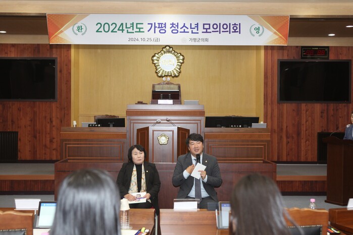 또한, 가평군의회 김종성 부의장과 이진옥 의원이 청소년 의회 체험 활동에 함께 참여하여 학생들의 모의의회 과정을 지켜보았고, 산회 후에는 학생들과 질의·응답 시간을 갖고 군의회의 지원 방안 등 다양한 애로 및 건의사항에 대한 의견을 나누었다.