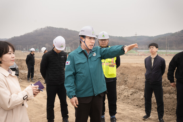 이어 이패동 일원 왕숙 2지구로 이동해 △왕숙 2지구 사업개요 및 추진현황 △지장물 해체 및 철거현황 △공종별 공사 진행상황 등에 대해 보고 받은 후 계획된 일정대로 신도시 및 인프라 조성이 가능한지 여부, 현장에서 발생하는 폐기물에 대한 적정 처리 현황 등을 일일이 챙기며 점검했다.