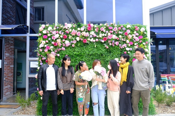 | ▲ 작은 정원과 작약으로 만들어진 포토존에 선 강진군도시재생프로젝트에 참여한 청년들 / 사진=강진군 제공 |