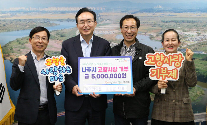윤송균 대표는 고향사랑기부제가 처음 시행된 2023년 당시 최고 상한액인 500만원을 나주시에 쾌척한데 이어 2024년에는 200만원, 올해 4월 11일 500만원을 기탁함으로서 3년 연속 고향사랑 나눔을 실천하였다.