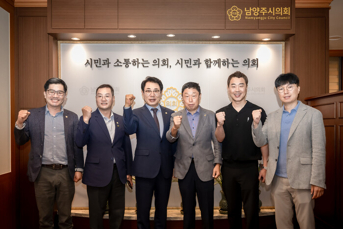 이날 의장실에서 진행된 차담회는 조성대 의장, 한근수 자치행정위원장, 김동훈 의원, 원주영 의원 등 남양주시의회 의원들과 강신관 남양주시태권도협회 회장, 김석산 사무국장 등 남양주시 태권도협회 임원진들이 참석한 가운데 열렸다.