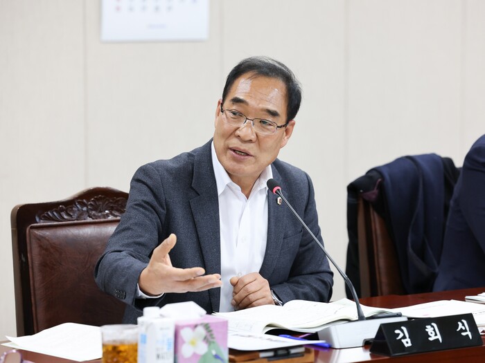 | ▲ 전라남도의회 김회식 의원이 지난 23일 보건복지국 업무보고에서 질의하고 있다. (출처=전남도의회) |