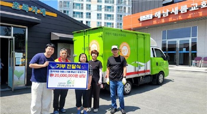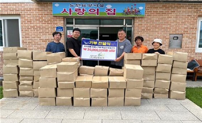 [해남=정찬남 기자] 농업회사법인 주)해남참농가(해남군 산이면)는 긴 장마 끝에 찾아온 폭염 속에 지치신 전남 지역 내 어르신들이 입소한 양로원과 지역사회 푸드뱅크 등을 찾아 아름다운 기부식을 가졌다.