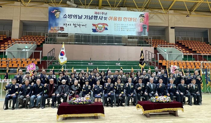| ▲ 해남소방서, 제61주년 소방의 날 기념 및 해남군 의용소방대 기술경연대회·어울림 한마당 개최 전 기념촬영 / 해남소방서 제공 |