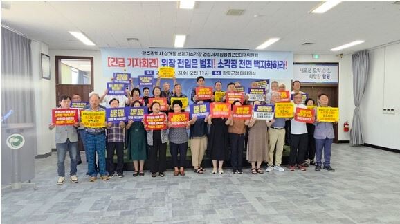 범군민대책위는 이날 오전 11시 함평군청 대회의실에서 기자회견을 갖고 “불법적인 위장 전입으로 조작된 주민 동의율은 무효이며, 이를 근거로 한 행정 절차 역시 원천 무효”라며 “광주시는 ‘잠정 중단’이라는 모호한 태도를 버리고 소각장 건설 계획을 전면 백지화해야 한다”고 촉구했다.