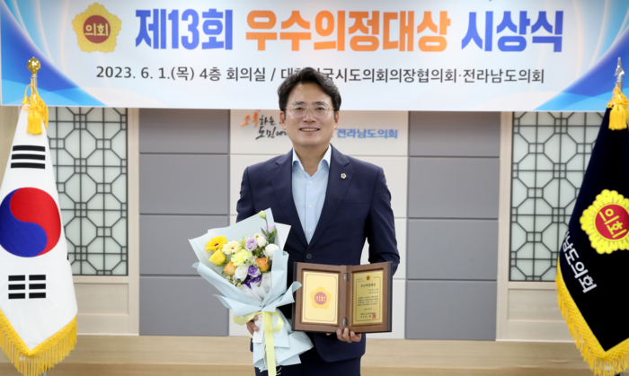 우수의정대상은 대한민국 시도의장협의회가 지역주민의 삶의 질 향상과 지방의회 발전에 이바지하는 등 우수한 의정활동을 펼친 의원에게 수여하는 상이다.