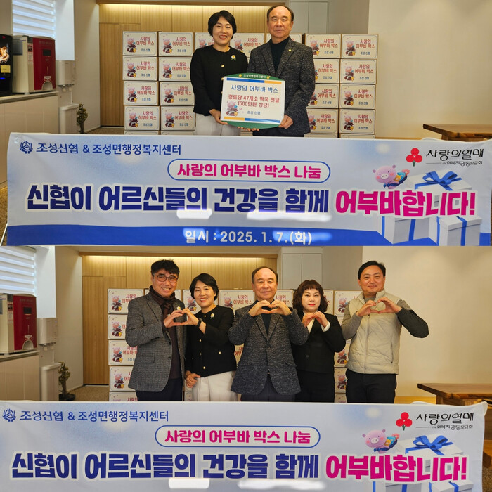 이번 행사를 위해 조성면 이몽근, 김채원 씨와 조성신협(이사장 김성만)이 각각 쌀과 어부바 세트(떡국 떡, 굴, 달걀 등)를 기부했다.