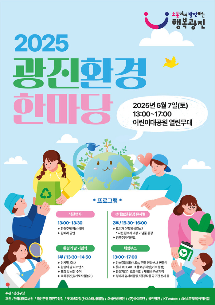 [시민일보 = 여영준 기자] 서울 광진구(구청장 김경호)가 제30회 환경의 날을 맞아 오는 6월7일 어린이대공원 열린무대에서 ‘2025 광진환경한마당’을 개최한다.
