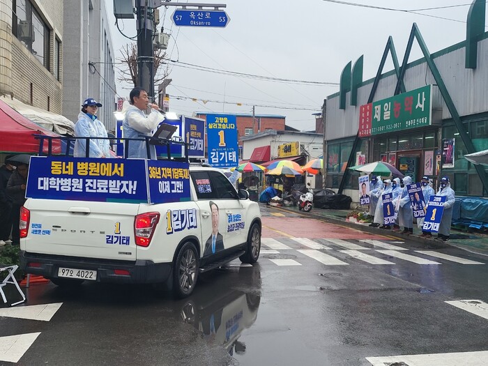 김기태 후보는 “핵 폐수 방류 인정, 역사왜곡 용인 등 대한민국의 대통령으로서가 아니라 마치 일본의 총리와 같은 윤석열정권, 무도하고 무책임하고 무능한 윤석열 정권의 조기종식 기원과 낙후되고 소외된 우리지역의 발전”을 위하여 이번 선거에 임하는 입장을 표명하며 많은 합천군민의 박수속에 1시간 가까이 출정식을 진행하였다