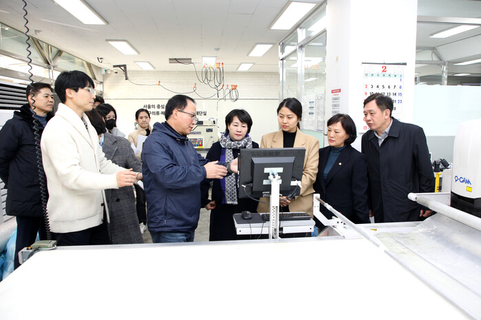 위원들은 첨단 자동화장비를 활용한 재단 서비스 운영 시스템에 대한 설명을 듣고, 센터 이용 현황 및 이용자 만족도에 대한 질의도 했다. 경제가 어려운 시기인 만큼 봉제산업 사업자들의 요구사항과 의견을 신속하게 반영하여 많은 도움을 줄 수 있도록 친절한 안내와 지원을 당부했다.