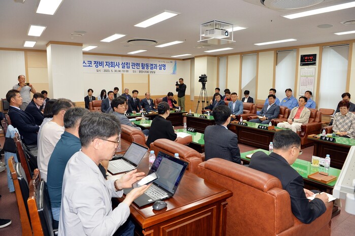 이날 회의는 서영배 의장을 비롯한 시의원들과 포스코 관계자, 지역 상공인단체 등 30여명이 참석했으며, 포스코 관계자들이 정비자회사 설립과 관련한 활동 결과를 설명하고 이후 참석자들이 질의응답하는 순으로 진행됐다.