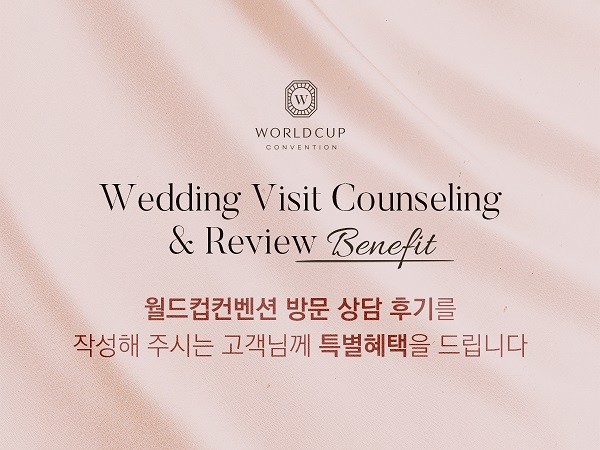 이번 프로모션은 월드컵컨벤션에 방문해 예식 상담 후 후기를 작성해주는 모든 예비부부가 대상이 되며 풍성한 혜택을 제공한다. 혜택으로는 스카이 플라워 샤워 서비스와 스타벅스 5만원 상품권을 증정하고 있다. 프로모션에 관련한 더욱 자세한 내용은 월드컵컨벤션 예약실 문의를 통해 확인 가능하다.