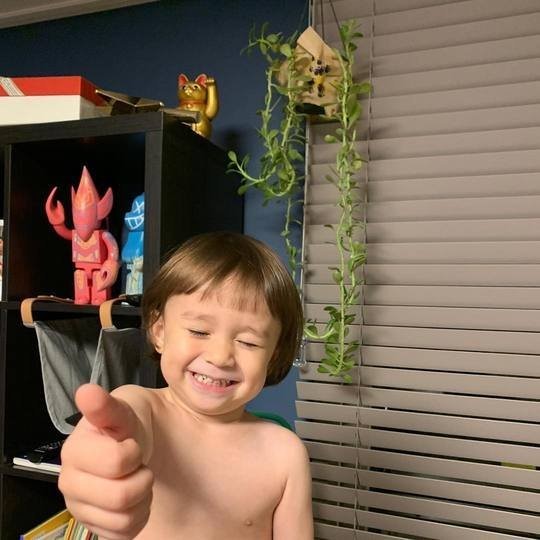 사진 속에는 종이로 감긴 식물 앞에서 엄지척 포즈를 취하고 있는 윌리엄의 모습이 담겼다.
