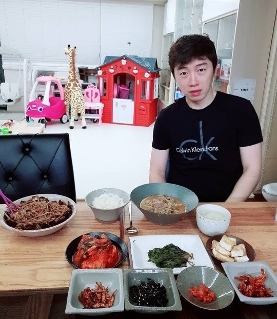 사진에는 식탁에 앉은 임요환의 모습이 담겨있다. 김가연의 솜씨가 돋보이는 정갈한 음식들이 눈길을 끈다.