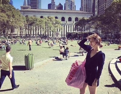 공개된 사진 속 권진아는 뉴욕에서 여행중 찍은 사진으로 마네킹 몸매로 시선을 사로잡는다.