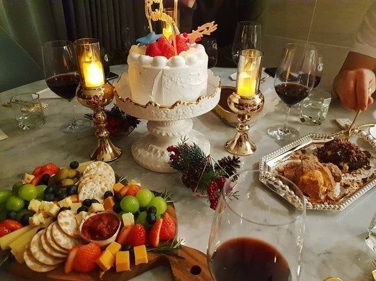 공개된 사진 속에는 요리를 하고 있는 이시영의 모습과 친구의 도움을 받아 차린 듯한 화려한 음식의 모습이 담겨있다. 특히, 식기 하나까지 정성스럽게 준비한 듯한 모습이 눈길을 끈다.