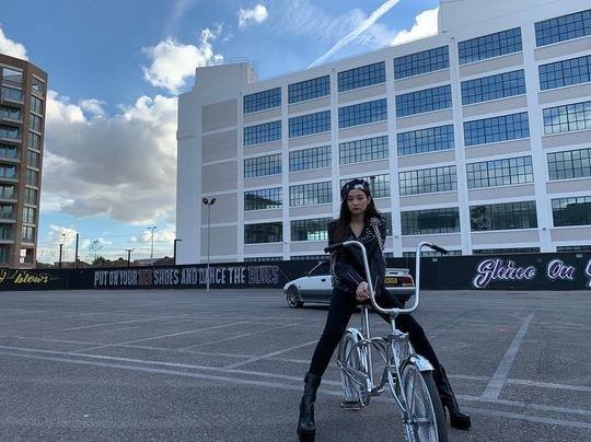 사진 속 제니는 올 블랙 의상을 입고 자전거에 앉아 카메라를 응시하고 있다. 특히, 앞으로 쭉 뻗은 가늘고 긴 다리는 보정이 필요 없는 미솝으로 감탄을 자아낸다.