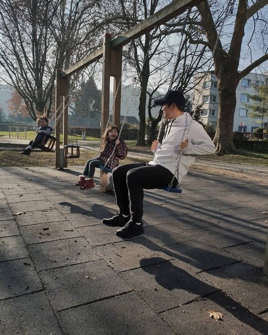 사진에는 놀이터를 찾은 박주호와 딸 나은 아들 건후의 모습이 담겨있다. 다정하게 그네를 타고 있는 세 사람의 모습이 인상적이다. 특히 사랑 가득한 눈빛으로 아빠 박주호를 바라보는 자녀들의 모습이 미소를 부른다.
