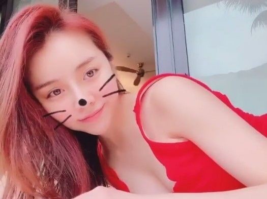 공개된 사진 속 설하윤은 빨간 수영복을 입고 누워 카메라를 응시하고 있다.