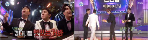 신인상 후보에 올랐지만 아쉽게 수상을 못한 성훈. 영상 속 멤버들은 성훈에 안타까움을 표하기 무섭게 '이불 밖은 위험해'로 신인상을 수상한 강다니엘의 외모에 감탄을 쏟아내 웃음을 유발했다.