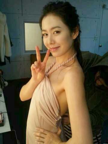 다른 사진에서는 스킨톤의 튜브톱 원피스를 입은 모습이다. 청순하고 가녀린 줄로만 알았던 손예진의 몸매에 치명적 굴곡이 있어 눈을 '번쩍'거리게 만들었다.