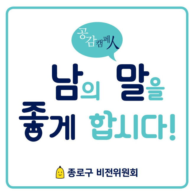 종로구 비전위원회는 지난해 전체회의를 열고 ‘남의 말을 좋게 합시다’ 선포식을 개최한 바 있으며, 2019년 1월 홍보스티커를 제작하여 지역 주민들에게 배부하고 적극적으로 홍보에 나설 예정이다.