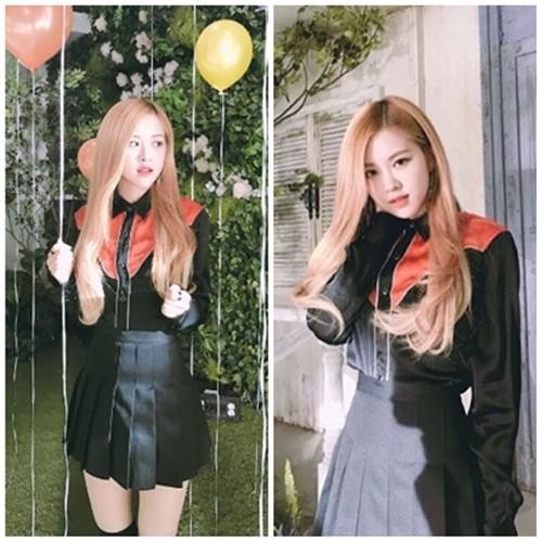 공개된 사진 속 로제는 금발 헤어를 늘어뜨리고 풍선들 사이에 서있다. 특히, 로제는 러블리한 블라우스와 가죽치마를 입고 인형 같은 외모를 뽐내 팬들을 설레게 했다.
