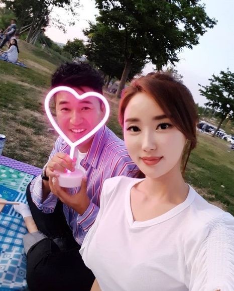 공개 된 사진 속에는 황미나와 김종민은 공원에서 데이트를 즐기고 있는 모습이다. 특히, 하트 조명 안에서 환하게 웃고 있는 김종민의 모습이 시선을 사로잡는다.