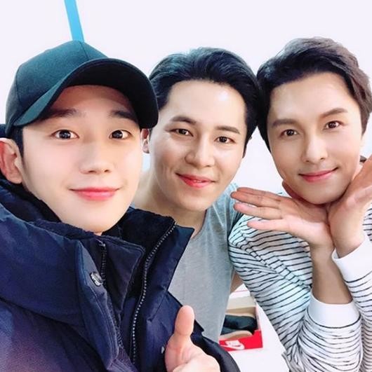 공개된 사진 속 정해인은 이규형, 김동완과 함께 카메라를 바라보며 미소 짓고 있다. 세 사람의 훈훈한 분위기가 눈길을 사로잡는다.