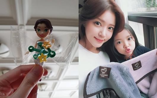 사진 속에는 테이프 날개를 달고 있는 서우 양의 인형이 담겼다. 순수하면서도 깜찍한 서우 양의 행동이 엄마 미소를 자아낸다.