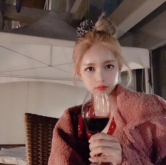 공개된 사진 속 큐리는 와인잔을 들고 카메라를 응시한 모습. 큐리는 바짝 올려 묶은 헤어 스타일에도 빈틈없는 이목구비를 자랑해 시선을 끌었다.