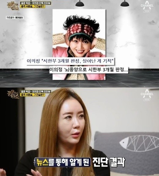 이어 이의정은 "시한부 판정 3개월은 맞다. 그게 뉴스에 보도됐고, 나는 뉴스를 보고 내 병을 알았다"고 전했다. 황영진은 "그때는 심각했던 병 아니었냐"고 물었고, 이의정은 "많이 심각했고, 많이 아팠다. 30대에 뇌종양을 진단받고 몸에 마비가 왔었다"고 고백했다.