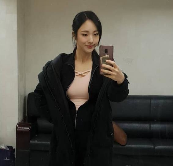 공개된 사진 속 분홍색 티를 입고 검은색 후드집업을 입은 박아인의 모습이 담겨 있다.