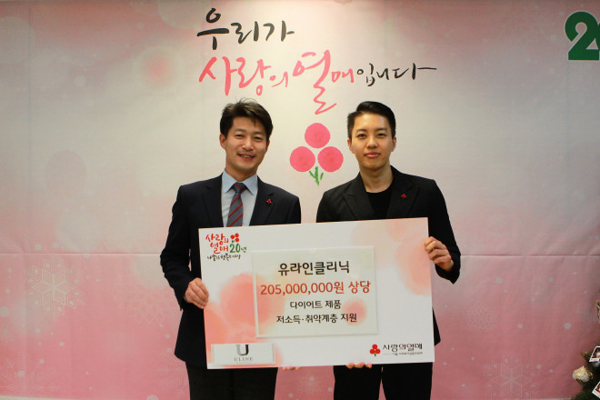 유승민 유라인클리닉 원장은 “서울 사랑의열매를 통해 지역사회에 조금이나마 보탬이 될 수 있게 되어 기쁘다.” 며 “내년에도 사회적 책임과 지속적인 나눔활동 계획하여 더 많은 분들에게 보탬이 될 수 있도록 노력하겠다.” 고 말했다.