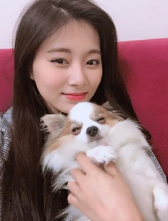 공개된 사진 속 쯔위는 강아지를 안고 사랑스러운 미소로 카메라를 응시하고 있다. 특히, 쯔위의 품에 안겨있는 강아지의 행복한 표정이 웃음을 자아낸다.